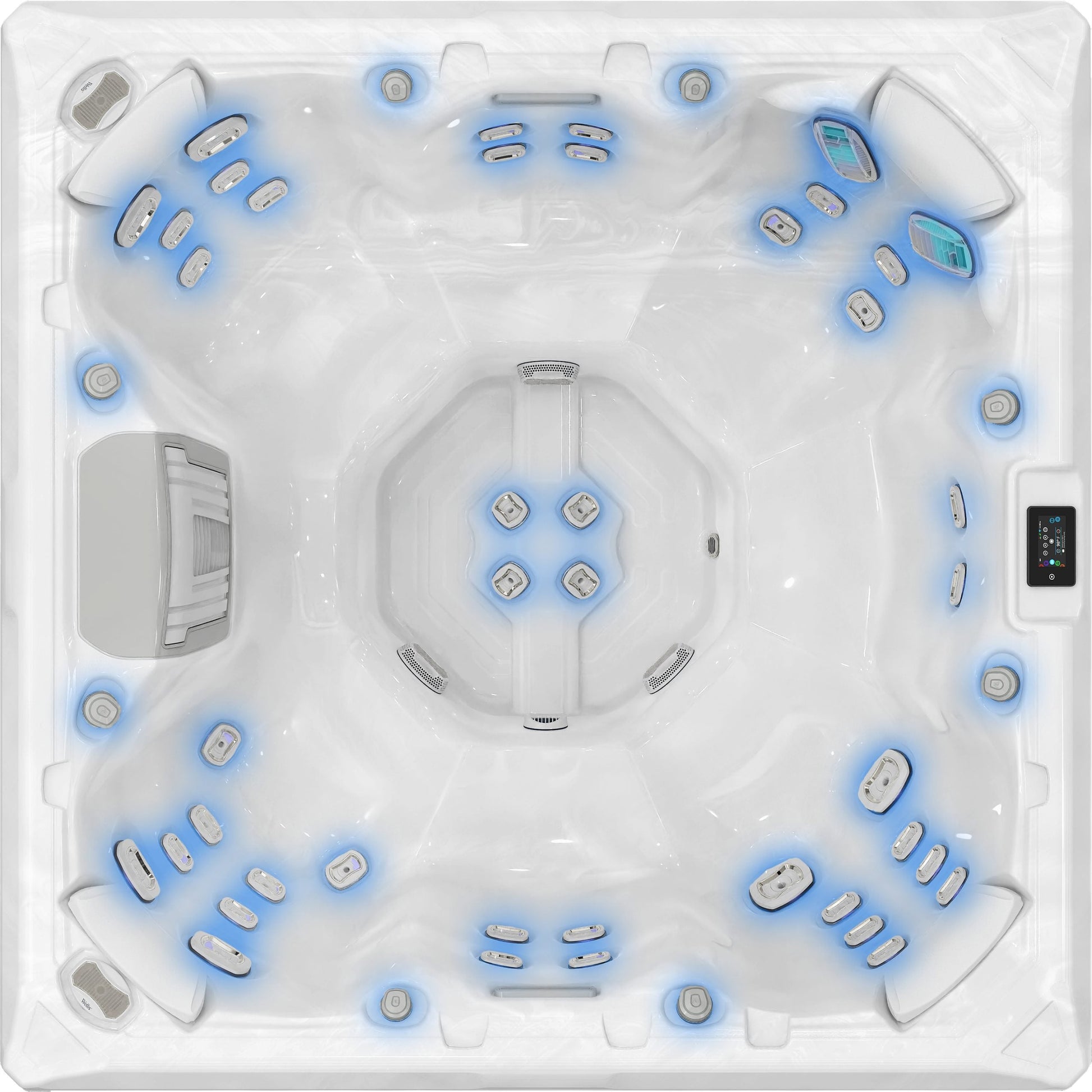 LightSide™-systemet i PeakLife-spa har skjult belysning under hjørnene og en egenutviklet LED-stripe langs sidepanelet.