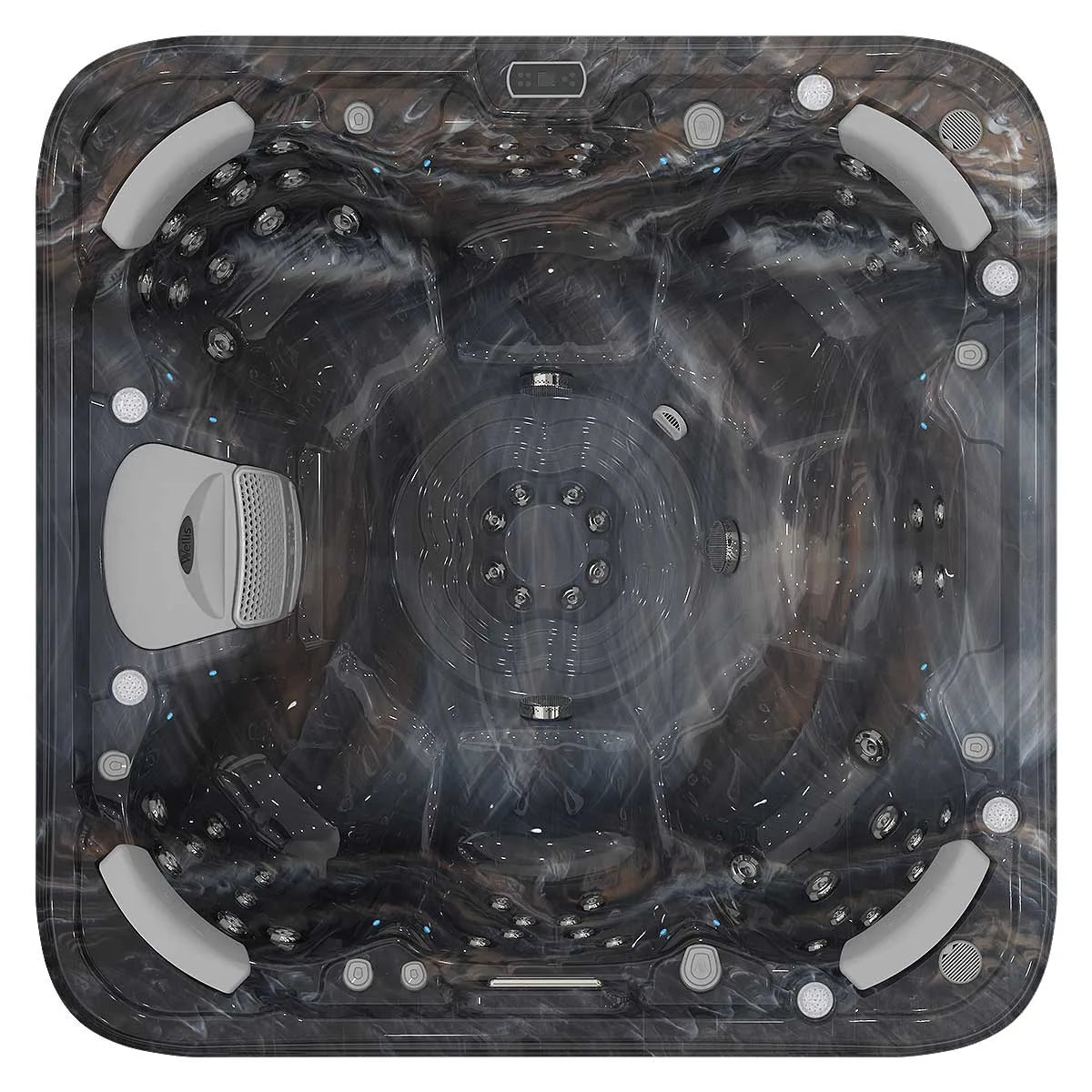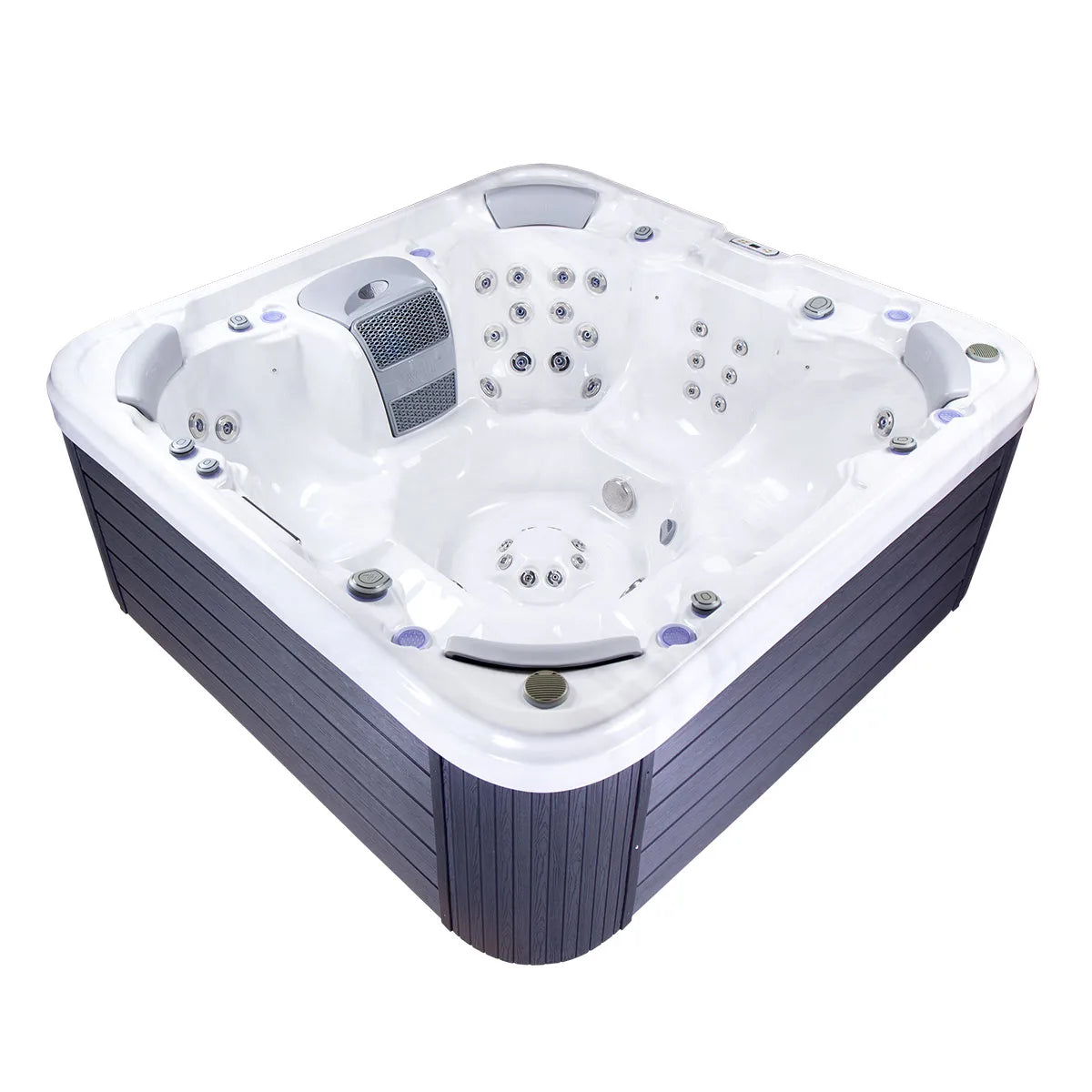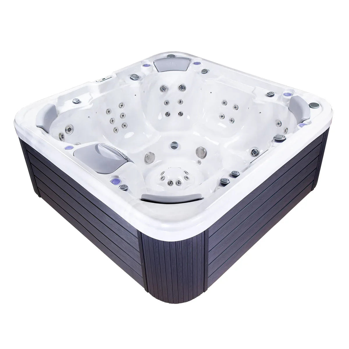 Med plass til opptil sju personer, 62 kraftige massasjedyser og avansert fotmassasjesystem får du både avslapning og energi i samme bad.
